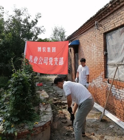 貧困戶魏澤美家是博農乳業(yè)公司對口扶貧幫扶戶,公司黨支部了解到魏澤美家中廁所年久失修,給其生活造成不便的實際情況,經過研究,決定發(fā)揮公司支部黨員水電、建筑等人才優(yōu)勢,組織黨員直接參與其廁所整修工作。30日下午,乳業(yè)公司黨員12人克服天氣炎熱、工作環(huán)境條件復雜的多重困難,全身心投入到廁所整修工作中,有的撤除房頂,有的焊接梁架,有的開挖水溝,有的連接電路,用整整一下午時間,完成了房頂撤除更換、連通水電的任務,幫扶工作受到貧困戶魏澤美的交口稱贊。